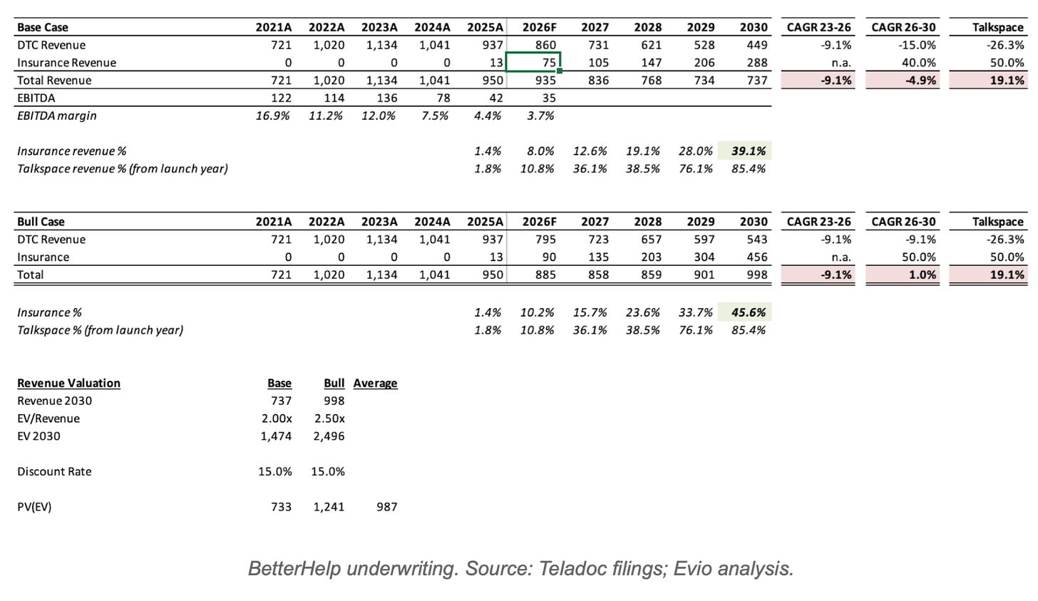 Before founding Evio I spent 15 years in and around private equity. I worked for a fund of funds looking at hundreds of co-investments every year alongside some of the best PE groups in the world. Based on that experience, and assuming the upcoming earnings call supports the 2026 forecast, I would pay up to $950M for BetterHelp, 1x revenue.
